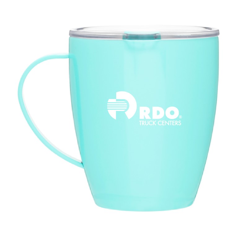 12 oz double wall 18/8 stainless steel thermal mug with copper vacuum insulation, clear acrylic push-on lid, and matching swivel - gift box included